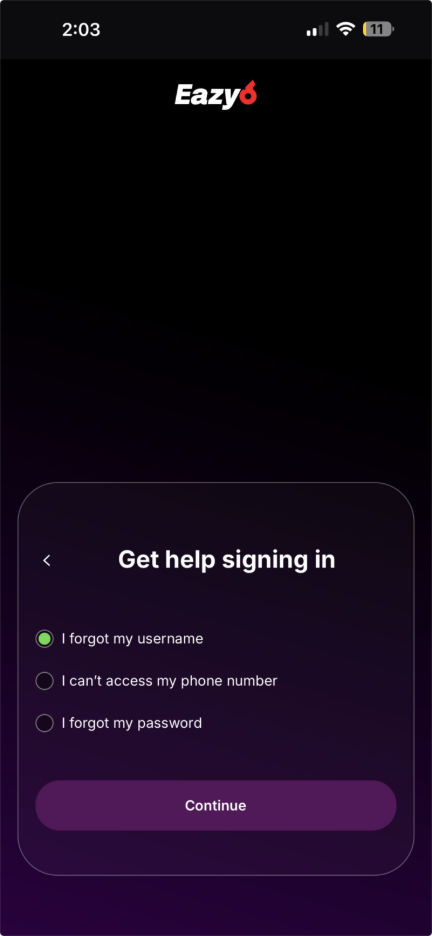 Eazy6 uses a password-optional system (you can log in with OTPs), but you can reset your password anytime for extra security. To reset your password: 1. Open the Eazy6 app. 2. Tap “Need Help?” on the Sign In screen. 3. Select “I forgot my password.” ...