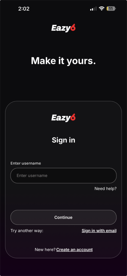 Eazy6 uses a simple, secure, multi-step authentication flow so only you can access your account. You can authenticate using phone SMS OTP, email OTP, and your password.